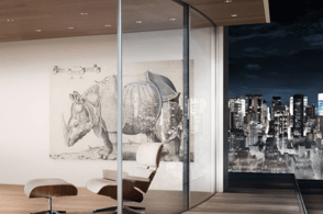 With ceiling-high door panels, as well as organically curved and inclined glass units, Sky-Frame is the key to individual spatial concepts and extraordinary architecture. True to the Bauhaus vision of “free-flowing space”, the sliding doors open up the living area with a flush transition. This allows inside and outside to merge seamlessly into one another. Thanks to the timeless frameless door design, the view is elevated to a fascinating design element.The Sky-Frame technology is 100% Swiss-made and stands for precise engineering and the pursuit of the best possible window.