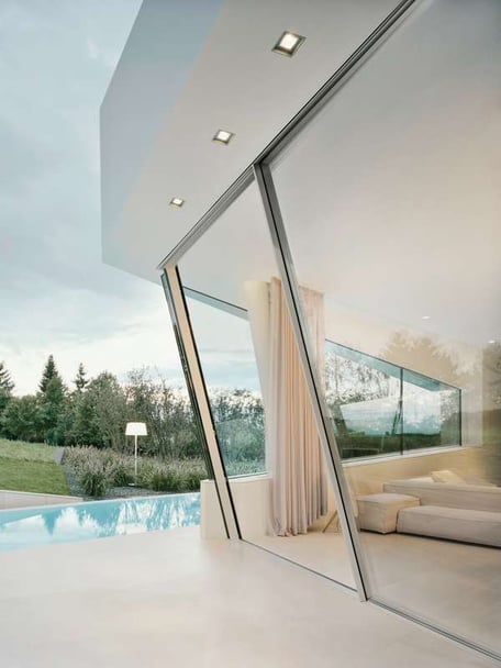 Depending on requirements, Sky-Frame Slope sliding windows can be installed with an inward or outward inclination. The system meets all Sky-Frame standards while generating a distinctive spatial